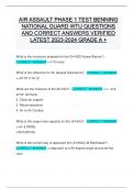 AIR ASSAULT PHASE 1 TEST BENNING NATIONAL GUARD WTU QUESTIONS AND CORRECT ANSWERS VERIFIED LATEST GRADE A AIR ASSAULT PHASE 1 TEST BENNING NATIONAL GUARD WTU QUESTIONS AND CORRECT ANSWERS VERIFIED LATEST GRADE A +