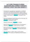 ALF CORE TRAINING, ALF CORE EXAM QUESTIONS AND CORRECT ANSWERS VERIFIED LATEST GRADE A +