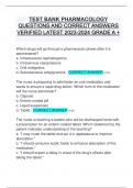 TEST BANK PHARMACOLOGY QUESTIONS AND CORRECT ANSWERS VERIFIED LATEST GRADE A +
