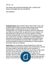 UNIT 10 D1 - evaluate the application of a selected research method and plan, make and justify recommendations for improvement