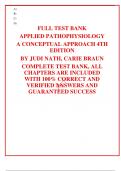 FULL TEST BANK APPLIED PATHOPHYSIOLOGY A CONCEPTUAL APPROACH 4TH EDITION BY JUDI NATH, CARIE BRAUN COMPLETE TEST BANK, ALL CHAPTERS ARE INCLUDED WITH 100% CORRECT AND VERIFIED ANSWERS AND GUARANTEED SUCCESS