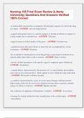 Nursing 105 Final Exam Review (Liberty University) Questions And Answers Verified 100% Correct