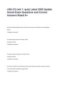 Prepare with LRA 213 (Week 1 Quiz) – Latest 2025 Update, featuring actual exam questions and verified correct answers rated A+. This resource includes detailed rationales to help students master core concepts, understand key course material, and confidently excel in LRA 213 assessments for 2025–2026.