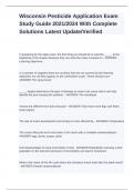 Wisconsin Pesticide Application Exam Study Guide 2021/2024 With Complete Solutions Latest Update/Verified