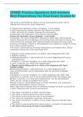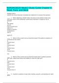 Topnurse01 On this page, you find all documents, package deals, and flashcards offered by seller Topnurse01. 798 Documents 0 Flashcards 5 Package deal Community 0 Followers 1 Following 803 items Everything Documents Flashcards Package deal Best sold Newest Rating BCAT Test 2023 Questions And Answers (0) $19.49 0x sold BCAT Test 2023 Questions And Answers i x Exam (elaborations) • 26 pages • by Topnurse01 • uploaded 2023 Quick View i x BCAT Tes 20ers • BCAT Tes 20ers PMHNP ANCC Exam Questions And Answers/100% Correct. (0) $17.49 0x sold PMHNP ANCC Exam Questions And Answers/100% Correct. i x Exam (elaborations) • 16 pages • by Topnurse01 • uploaded 2023 Quick View i x PMHNorrect • PMHNorrect TMC Practice Exam 2023 | 150 Questions And Answers GRADED A+ (0) $16.49 0x sold TMC Practice Exam 2023 | 150 Questions And Answers GRADED A+ i x Exam (elaborations) • 33 pages • by Topnurse01 • uploaded 2023 Quick View i x TMC Pracnswers • TMC Pracnswers MOD 1: Study Guide Growth and Development and Immunizations: (0) $22.99 0x sold MOD 1: Study Guide Growth and Development and Immunizations: i x Exam (elaborations) • 108 pages • by Topnurse01 • uploaded 2023 Quick View i x MOD 1: Std Immu • MOD 1: Std Immu NURSING6020 Week2 Study Guide Chapter 4. Head, Face, and Neck (0) $18.89 0x sold NURSING6020 Week2 Study Guide Chapter 4. Head, Face, and Neck i x Exam (elaborations) • 23 pages • by Topnurse01 • uploaded 2023 Quick View i x NURSINad, Fac • NURSINad, Fac NSG 6020 3p EXAM QUESTIONS AND ANSWERS (0) $18.97 0x sold NSG 6020 3p EXAM QUESTIONS AND ANSWERS i x Exam (elaborations) • 29 pages • by Topnurse01 • uploaded 2023 Quick View i x NSG 6020 3p ESWERS • NSG 6020 3p ESWERS The Health History and Health Assessment Brittany Lieber Chamberlain College of Nursing NR 304: Health Assessment (0) $16.49 0x sold The Health History and Health Assessment Brittany Lieber