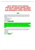 ANCC PMHNP PSYCH-MENTAL HEALTH NP LATEST EXAMS| TESTS 1 ,2, AND 3 QUESTIONS, ANSWERS, AND RATIONALE LATEST