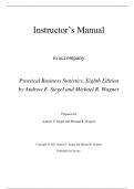 Complete Instructor’s Manual to accompany Practical Business Statistics, Eighth Edition by Andrew F. Siegel and Michael R. Wagner.