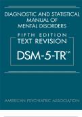 The Diagnostic and Statistical Manual of Mental Disorders, Fifth Edition, Text Revision (DSM-5-TR), is the most comprehensive, current, and critical resource for clinical practice available to today's mental health clinicians and researchers. DSM-5-TR includes the fully revised text and references, updated diagnostic criteria and ICD-10-CM codes since DSM-5 was published in 2013. It features a new disorder, Prolonged Grief Disorder, as well as codes for suicidal behavior available to all clinic...