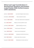Ethical and Legal Considerations in Nursing Exam Questions and Answers (Latest Update 2026) Verified Answers (100% Questions)