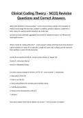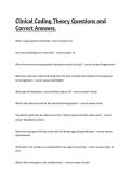 - Clinical Coding Theory Questions and Correct Answers. • Exam (elaborations)