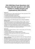 This document features a comprehensive CDA mock exam with 50 carefully selected Certified Dental Assistant questions, each including 100% verified, A+ graded answers and clear, detailed explanations. It covers essential CDA exam topics such as infection control, chairside assisting, dental materials, radiography, and patient safety, making it an effective study resource for CDA exam preparation for the 2026 exam cycle.
