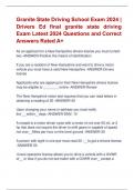 Answers Rated A+ i x Prüfung • 37 Seiten • von Tutorhailey • hochgeladen 2024 Schnellansicht i x CMN 548 Module 3 • CMN 548 Module 3 Granite State Driving School Exam 2024 | Drivers Ed final granite state driving Exam Latest 2024 Questions and Correct Answers Rated A+ (0) $18.49 0x verkauft Granite State Driving School Exam 2024 |