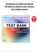 Full Test Bank – Introduction to Critical Care Nursing, 8th Edition by Deborah, Klein, Moseley, All 21 Chapters Covered