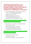 CERTIFIED NURSING ASSISTANT (CNA) ACTUAL PREP QUESTIONS AND WELL REVISED ANSWERS - LATEST AND COMPLETE UPDATE WITH VERIFIED SOLUTIONS – ASSURES PASS COMPREHENSIVE ASSESSMENT