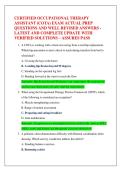 CERTIFIED OCCUPATIONAL THERAPY ASSISTANT (COTA) EXAM ACTUAL PREP QUESTIONS AND WELL REVISED ANSWERS - LATEST AND COMPLETE UPDATE WITH VERIFIED SOLUTIONS – ASSURES PASS
