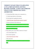 VERMONT NOTARY PUBLIC EXAMINATION ACTUAL PREP QUESTIONS AND WELL REVISED ANSWERS - LATEST AND COMPLETE UPDATE WITH VERIFIED SOLUTIONS – ASSURES PASS