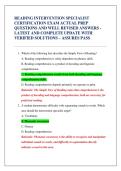READING INTERVENTION SPECIALIST CERTIFICATION EXAM ACTUAL PREP QUESTIONS AND WELL REVISED ANSWERS - LATEST AND COMPLETE UPDATE WITH VERIFIED SOLUTIONS – ASSURES PASS