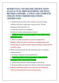RESIDENTIAL COUNSELOR CERTIFICATION EXAM ACTUAL PREP QUESTIONS AND WELL REVISED ANSWERS - LATEST AND COMPLETE UPDATE WITH VERIFIED SOLUTIONS – ASSURES PASS