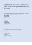 NCLEX Practice Questions HURST REVIEW (Adult Health) with Complete Answers with Rationales