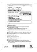 Pearson Edexcel Level 3 GCE Music Technology Advanced Subsidiary COMPONENT 1: Recording Task MAY 2025