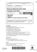 Pearson Edexcel Level 3 GCE Spanish Advanced PAPER 1: Listening, Reading and Translation JUNE 2025 combined Question Paper and Mark scheme