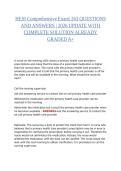 This HESI Comprehensive Exam | 263 Questions with Complete Verified Answers (2026 Edition, A+) is a complete study resource designed to help nursing students prepare thoroughly for the HESI Comprehensive Exam. The document features 263 carefully selected questions paired with verified correct answers and detailed explanations, making it an essential tool for exam preparation, revision, and self-assessment.
