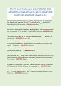 This PSYCH 442 – Final Exam Comprehensive Review (2026 Edition) is a complete and reliable study resource created to help psychology students prepare effectively for their final examination. The material features exam-relevant questions paired with verified correct answers and detailed explanations, supporting both conceptual understanding and exam readiness.