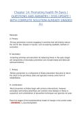 This Chapter 14 – Promoting Health (F.A. Davis) study resource provides a comprehensive review of key concepts related to health promotion and disease prevention as presented in the F.A. Davis textbook. The document features carefully selected questions paired with verified correct answers, making it an effective tool for exam preparation and concept reinforcement.
