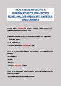 REAL ESTATE MODELING 1: INTRODUCTION TO REAL ESTATE MODELING | QUESTIONS AND ANSWERS | 100% CORRECT