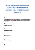 PLTW - Freshman Practice test from QUESTIONS AND ANSWERS 100% CORRECT ALREADY GRADED A+