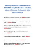 Pharmacy Technician Certification Exam 2026/2027 | Complete Questions & Verified Answers | Pharmacy Technician & Retail Certification Prep