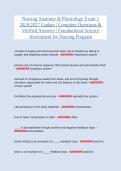 This document is a comprehensive study resource for nursing students preparing for Exam 1 in Anatomy & Physiology during the 2026/2027 academic year. It includes complete exam-style questions with verified answers, designed to strengthen foundational science knowledge and support academic success in nursing programs.