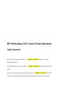 RE Marketing SAE Course Exam Questions And Answers.