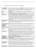 Het is een lijst met de belangrijkste begrippen en schema's uit de powerpoints van de lessen. Het is 22 pagina's lang en is heel uitgebreid waardoor het bijna een samenvatting is o.b.v. de begrippen. De artikels zijn niet opgenomen in deze samenvatting, aangezien deze ook niet te kennen zijn.