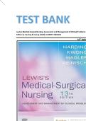Test Bank Lewis Medical-Surgical Nursing: Assessment and Management of Clinical Problems 13th Edition By Harding & Kwong ( Latest Version)