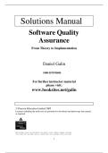 This document provides complete solutions for all exercises in Software Quality Assurance: From Theory to Implementation by Daniel Galin, covering Chapters 1–26. It includes detailed, step-by-step solutions and explanations for topics such as software quality models, testing techniques, process improvement, verification and validation, metrics, and implementation strategies. The material is ideal for students and professionals seeking thorough understanding and practical guidance in software q...