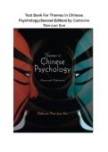 This document contains a comprehensive test bank for Themes in Chinese Psychology (Second Edition) by Catherine Tien-Lun Sun, covering philosophical foundations, social psychology, and cultural influences on psychological processes in Chinese society. It includes multiple-choice questions with correct answers and explanations related to Confucianism, Taoism, Buddhism, Chinese values, relational dynamics, emotions, and psychological wellness. The material is organized by chapter and is designed t...