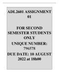 Assignment 1 second semester 2022 ADL2601 - Administrative Law (ADL2601)