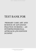 TEST BANK FOR PRIMARY CARE ART AND SCIENCE OF ADVANCED PRACTICE NURSING – AN INTERPROFESSIONAL APPROACH 5TH EDITION DUNPHY.