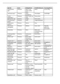 Overzichtstabel alle parasieten met eigenschappen, handig voor de laatste oefeningen van het examen waar de prof ook zo een tabel geeft.