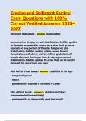 Erosion and Sediment Control Exam 2026–2027 | Exam Questions with 100% Correct Verified Answers | Certification Prep PDF