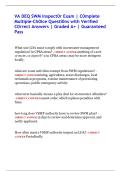 This VA DEQ SWM Inspector Exam pack includes complete multiple-choice questions with verified correct answers. Designed to help you master Virginia’s stormwater management inspection requirements, this study guide ensures full exam coverage and confidence on test day. Expert-verified and graded A+ for guaranteed accuracy and success.