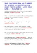 This comprehensive Texas Jurisprudence Exam 2026 test bank includes all 551 verified questions with 100% correct answers, carefully reviewed and updated to reflect the latest Texas Board of Nursing standards and regulations. It covers professional conduct, legal responsibilities, ethical decision-making, delegation, informed consent, patient safety, and disciplinary procedures. Ideal for nursing and healthcare professionals preparing for Texas licensure, this resource ensures complete exam readi...