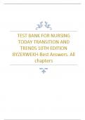 TEST BANK FOR NURSING TODAY TRANSITION AND TRENDS 10TH EDITION BYZERWEKH-Best Answers. All chapters, Good for revision purpose and has correct answers