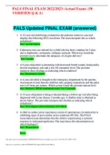 PALS Updated FINAL EXAM 2022/2023 (50 VERIFIED Q & A) (All questions answered) 1. A 12-year-old child being evaluated in the pediatric intensive care unit displays the following ECG waveform. The team interprets this as which arrhythmia? second degree 2. Laboratory tests are ordered for a child who has been vomiting for 3 days and is diaphoretic, tachypneic, lethargic and pale. Which test would the provider use to determine the adequacy of oxygen delivery? Lactate 3. A 9-year-old patient is pres...