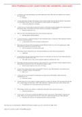 HESI PHARMACOLOGY (QUESTIONS AND ANSWERS) (2022/2023) 1. A healthcare provider prescribes cephalexin monohydrate (Keflex) for a client with a postoperative infection. It is most important for the nurse to assess for what additional drug allergy before administering this prescription? A) Penicillins. B) Aminoglycosides. C) Erythromycins. D) Sulfonamides. A) Penicillins. Cross-allergies exist between penicillins (A) and cephalosporins, such as cephalexin monohydrate (Keflex), so checking for penic...