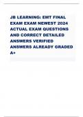 JB LEARNING: EMT FINAL EXAMEXAM NEWEST 2024 ACTUAL EXAM QUESTIONS AND CORRECT DETAILED ANSWERS VERIFIED ANSWERSALREADY GRADED A+