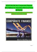 TEST BANK for Corporate Finance 4th Edition by Jonathan Berk & Peter DeMarzo ALL CHAPTERS 1-16 WITH VERIFIED QUESTIONS & CORRECT ANSWERS| A+ PASS